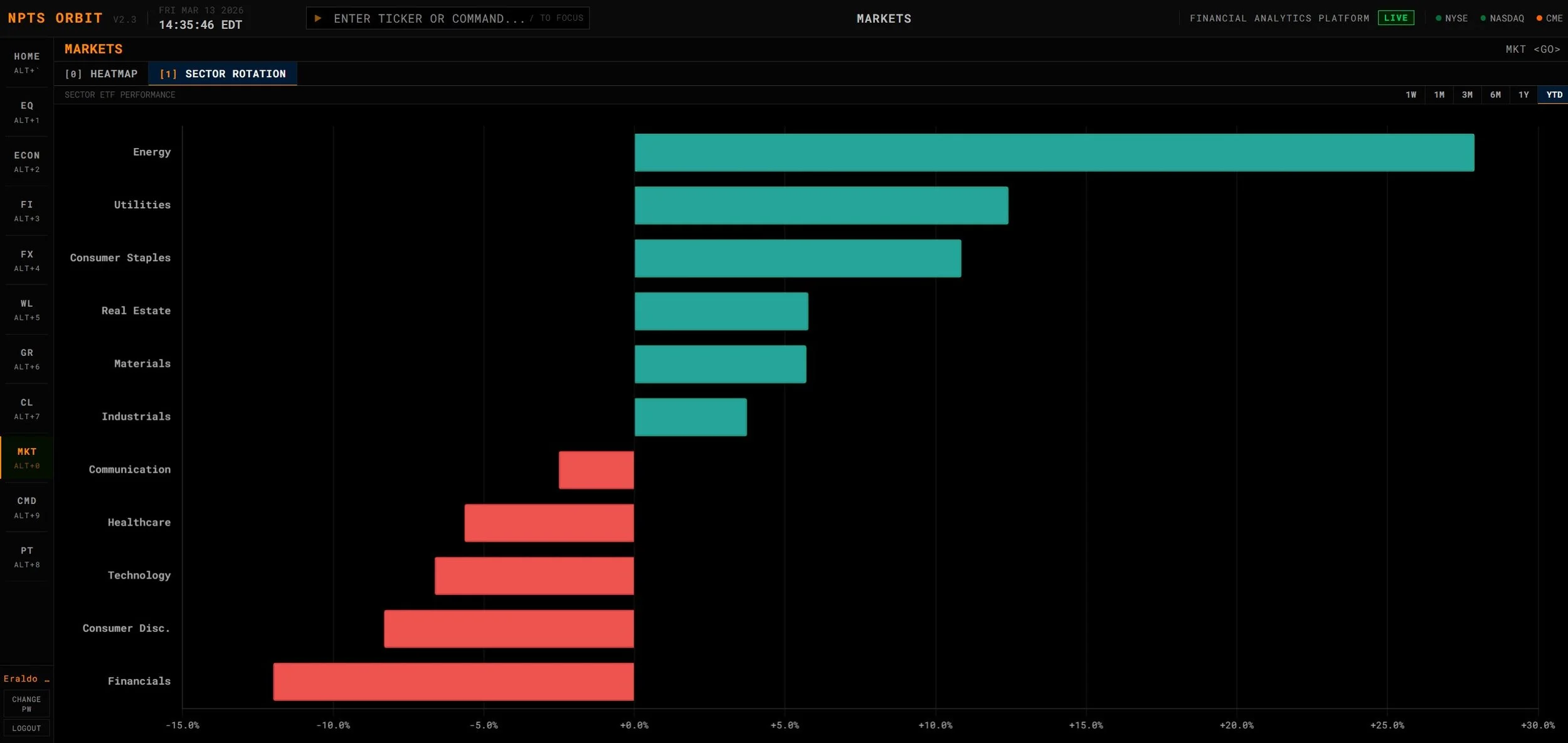 Fonte: NPTS ORBIT – Março 2026. Rotação entre setores da bolsa americana desde o início do ano.