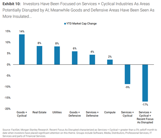 Fonte: Relatório Morgan Stanley de Fevereiro de 2026. “Vítimas da disrupção em IA”